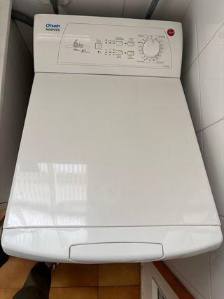 Lavadora de carga superior marca Otsein Hoover en perfecto estado. Si vienes a recogerla el precio es negociable. - Capacidad de 6kg. - Dimensiones: 60cm (profundidad) x 39cm (ancho) x 83cm (alto).