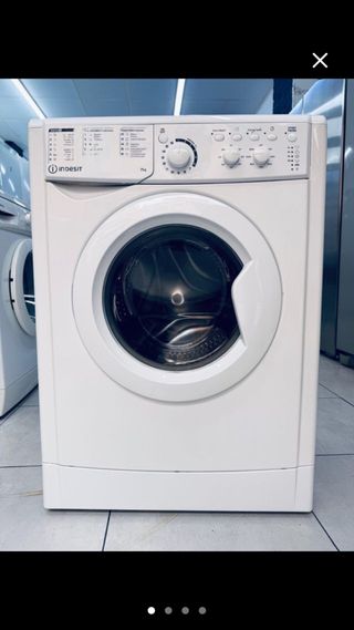 Lavadora de carga frontal Indesit en color blanco. - Capacidad de 7 kg. - Eficiencia energética A+. - Panel de control con programas. - Puerta frontal con cristal. Funciona perfectamente Muy Bueno Estado Calidad Tiene Programdor Corto 30 Minutos Vendemos Muebles Nuevo Canapé Colchón Armario Mesa Litera Somier Sofa cama Cómoda dormitorio Mesita