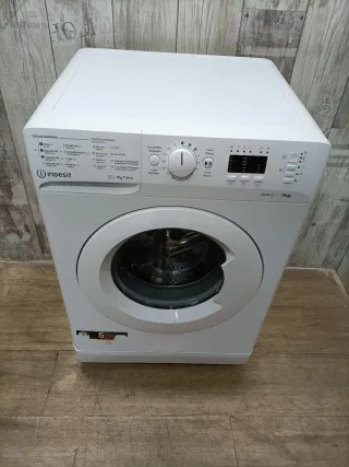 Lavadora de carga frontal de la marca Indesit.Esta en gerona - Color blanco. - Panel de control con programas. - Puerta redonda. - Capacidad de 9 kg. Le falta la tapa del desague pero no afecta