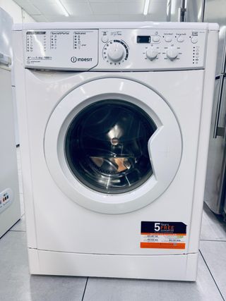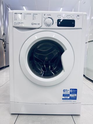 Lavadora Indesit de carga frontal con capacidad de 6kg. Tiene 3 años de antigüedad. - Color blanco. - Panel de control con programas. - Puerta frontal. - Eficiencia energética.