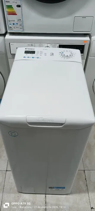 Lavadora de carga superior en color blanco. Diseño moderno y funcional. - Panel de control con selector giratorio y pantalla digital. - Asa integrada en la parte superior para facilitar la apertura. LAVADORA SUPERIOR MARCA CANDY 6 KG ALTURA 85 cm ANCHO 40 cm PROGRAMA LAVADO SUPER RÁPIDO 30 MINUTOS RPM 1000 ENERGÉTICA A+ BAJO CONSUMO ESTA EN PERFECTAS CONDICIONES CON EL SERVICIO TÉCNICO Y GARANTÍA Y FACTURA EL TRANSPORTE ES APARTE AL ENVÍO ENTREGAMOS AL MISMO DÍA MAS INFORMACIÓN AL WHATSAPP 676805023
