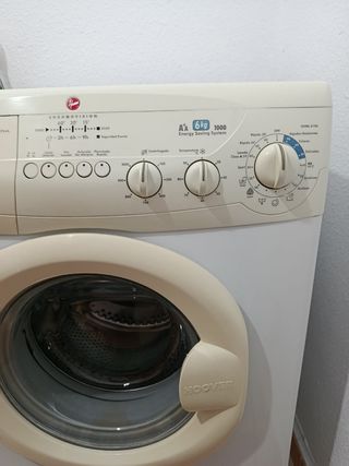 Lavadora Hoover de tamaño compacto de 6,5kg ideal para dos personas es de carga superior, ideal para espacios reducidos. Se encuentra en buen estado, aunque presenta algunas marcas de uso en la superficie. Hace dos años se le cambió la correa del motor, funciona perfectamente solo habría que limpiar el bombo para su máxima limpieza de la ropa. Se vende por mudanza. Precio negociable