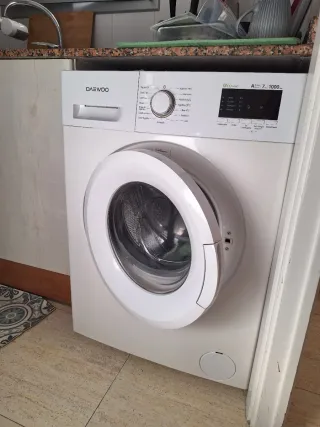Lavadora Daewoo con capacidad de 7 kg y 1000 revoluciones por minuto. - Modelo EcoWash. - Panel de control con programas variados. - Diseño frontal blanco. Recogida en barrio de Sants Fecha de recogida: 24, 25, 26 de marzo
