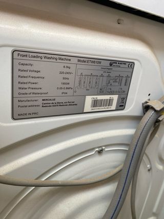 Estado tal como se ve en las fotos.Lavadora de carga frontal ERS ELECTRIC. - Capacidad de 6kg. - Clasificación energética A+++. - Panel de control con programas de lavado y centrifugado. - Puerta frontal con acabado en negro.