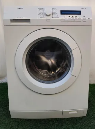 Lavadora AEG Lavamat Protex Plus de carga frontal. Diseño moderno en color blanco. - Capacidad de 9 kg. - Tecnología Protex Plus. Lavadora de carga frontal de ocasión en perfecto estado y funcionando correctamente 👍 con garantía y opción de porte. Marca: AEG Lavamat Tecnología protex plus con sensor de peso. Carga de lavado: 9 kilos Velocidad centrifugado 1400RPM Color: blanco con panel en inox. Medidas: 85 de alto x 60 de ancho x 60 de fondo. Garantía seis meses por funcionamiento 📝 Portes sólo Madrid capital y cercanías. Se deja instalado y se retira antigua si lo requieres.🧑🔧