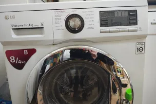 Lavadora secadora LG con tecnología Inverter Direct Drive. - Capacidad de lavado de 8 kg y secado de 4 kg. - Clase energética B. - Programas: Ciclo de Secado, Algodón, Lana, Ropa de deporte, Baby Care, Enjuague+Centrifugado, entre otros. - Opciones: Secado sin planchado, Secado para planchado, Secado de baja temp., Secado de tiempo, Intensivo 60, Algodón ecológico, Cuidado fácil, Rápido 30. - Motor Inverter Direct Drive Hace ruido al centrifugar. Posible daño en rodamiento o cojinete. Por eso el precio