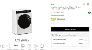 • De media, comprar Lavadora secadora en Wallapop es un 44% más barato que comprar este tipo de producto nuevo