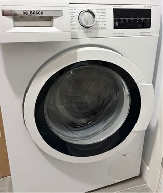 Lavadora Bosch Serie 6 VarioPerfect con capacidad de 8 kg y 1200 rpm. - Carga frontal. - Tecnología EcoSilence Drive. - Panel de control digital. Vendo lavadora Bosch Serie 6 con 4 años de uso, en muy buen estado y funcionando perfectamente. El motor EcoSilence Drive cuenta con 10 años de garantía por parte de Bosch. Dispone de varios programas de lavado, centrifuga muy bien y es silenciosa. La vendo únicamente por cambio de vivienda, ya que en la actual ya hay lavadora. Características: • Capacidad: 8 kg • Velocidad de centrifugado: 1200 rpm • Motor EcoSilence Drive • Serie 6 Para más información escríbeme.
