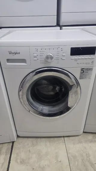 Lavadora Whirlpool de carga frontal con capacidad de 7kg. Diseño moderno en color blanco. - Panel de control digital. - Selector de programas. - Indicadores LED. Lavadora buen estado funcion perfectamente garantia 6 meses con factura transport A parte Envio misimo dia. Mas information whatsaap. 672 15 73 51.