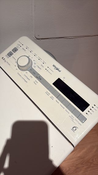 Lavadora Whirlpool de carga superior en buen estado. - Capacidad de 6.5 kg. - Color blanco. - Panel de control con selector de programas y pantalla digital.