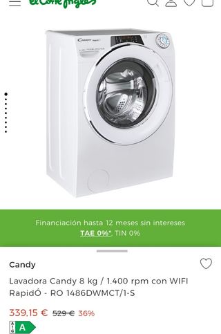 Oferta Black Friday 250€ Lavadora carga frontal - Candy RapidÓ RO 1284DWMT/1-S, 8kg, 1200rpm, Motor Inverter, Wi-Fi, Vapor, 16 Programas, Blanco .Nueva de tara estética Tienda física estamos en fuensalida el precio no incluye el transporte GARANTÍA OFICIAL DE 3AÑOS Posibilidad de transporte. Mas información 6545579 31