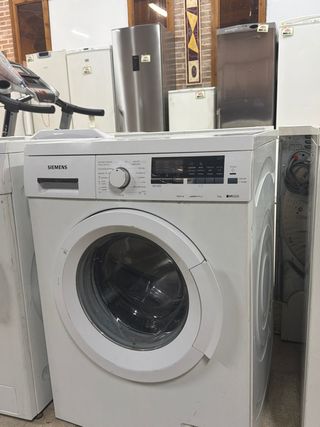 Lavadora de carga frontal Siemens en color blanco. Diseñada para ser eficiente y fácil de usar. - Capacidad de 8 kg. - Velocidad de centrifugado de 1500 rpm. - Panel de control digital con programas variados.