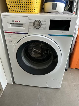 PREGUNTAR PARA PRECIO SEGÚN PIEZA. Lavadora Bosch blanca WAT24662ES, con 6 años, estropeada para arreglar o piezas. 8 Kg, 1200 r.p.m, I-Dose, función pausa+carga, motor 10 años garantia, programación para inicio/fin diferido. Tambor descolgado. Valorado por técnico que estima que está roto el Eje, estrella del eje o rodamientos de los mismos. No la he arreglado por presupuesto excesivo y compra de una nueva. Hasta ahora ha funcionado perfectamente, sin haber necesitado ningun otro arreglo desde que la compré hace 6 años. Estéticamente, electrónica, motor, todas las partes mecánicas (al margen del tambor) y todos las partes de suministro y sustentación de cuba, en perfecto estado.