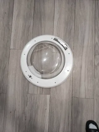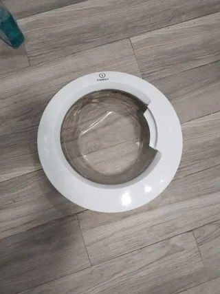 Puerta de lavadora de la marca Indesit. - Color blanco. - Diseño circular con cristal.