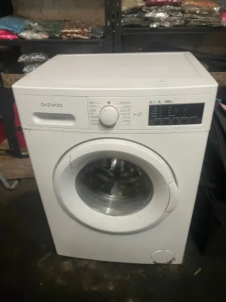 Lavadora blanca de carga frontal marca Daewoo. - Capacidad de 6 kg. - Velocidad de centrifugado de 1000 rpm. - Panel de control con programas. - Diseño moderno y funcional.