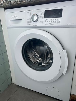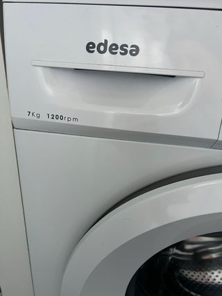 Lavadora de carga frontal Edesa. - Color blanco. - Panel de control con pantalla digital. - Puerta redonda con tirador. 7 kg de carga la lavadora funciona perfectamente pero la puerta en ocasiones se traba al terminar el lavado. con un truco se puede abrir, pero lo ideal sería repararla
