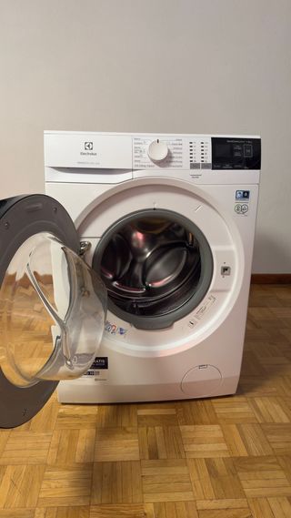 Lavadora de carga frontal Electrolux PerfectCare 600 con capacidad de 8 kg. Su diseño moderno y elegante se adapta a cualquier hogar. - Color blanco. - Panel de control intuitivo. - Puerta frontal con apertura amplia. Muy cuidada