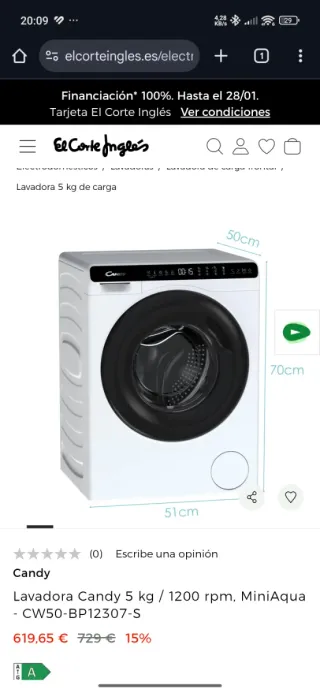 Lavadora Candy de carga frontal con capacidad de 5 kg. Modelo MiniAqua - CW50-BP12307-S Comprada en 2025 principios. Aun en garantía. DISPONIBLE A PARTIR DE MEDIADOS DE FEBRERO 2026 - Dimensiones: 50cm (ancho) x 70cm (alto) x 51cm (fondo). - Velocidad de centrifugado: 1200 rpm.