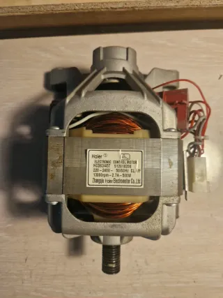 Motor de control electrónico para lavadora Haier. - Modelo: HCD63/45T - Potencia: 500W - Voltaje: 220-240V - Frecuencia: 50/60Hz - Velocidad: 13000rpm - Fabricante: Zhangqiu Haier Electromotor Co.,Ltd.