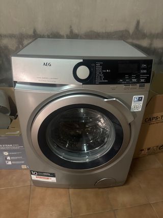 Lavadora AEG modelo 7000 Series Lavamat con tecnología ProSteam. - Color plateado. - Panel de control digital. - Puerta frontal. - Capacidad de carga de 10 kg. La vendo por cambio de domicilio.