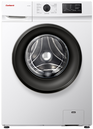 Lavadora de carga frontal Corberó en color blanco. - Capacidad de 6 kg. 1000 rpm revoluciones centrifugado - Panel de control con selector giratorio y pantalla digital. - Puerta con acabado en negro. producto con 3 años de garantia fabricante