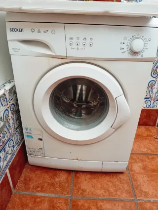 Lavadora de carga frontal marca Becken con capacidad de 7 kg. Presenta una avería, posiblemente en el programador. - Capacidad: 7 kg. - Marca: Becken. - Tipo de carga: Frontal. - Posible avería en el programador.