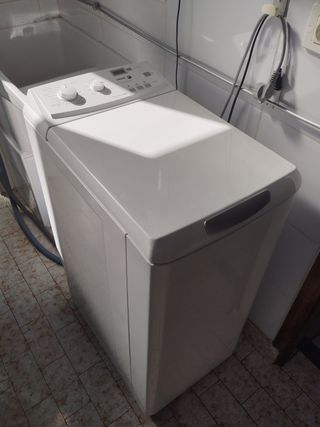 Lavadora Indesit de carga superior. Funciona pero no centrifuga. El técnico me cobrará 50euros - Color blanco. - Panel de control digital.