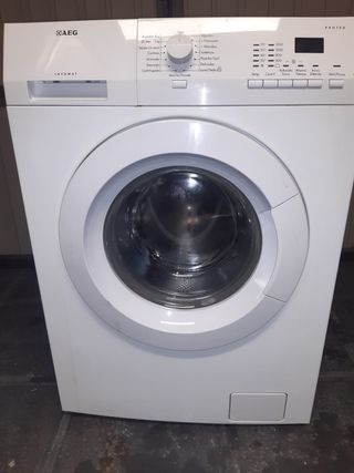 Lavadora de carga frontal AEG Lavamat Protex. - Color blanco. - Panel de control con programas variados. - Puerta frontal. - Compartimento para detergente. Llevo instalo en el mismo precio