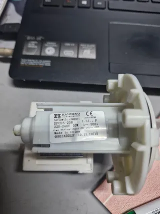 Bomba de desagüe Hanning modelo DP025-208, compacta y eficiente. - Voltaje: 220-240V. - Potencia: 30W. - Frecuencia: 50Hz. - Clasificación: Clase F. - Fabricada en China. - Modelo: 4681EA2002F.