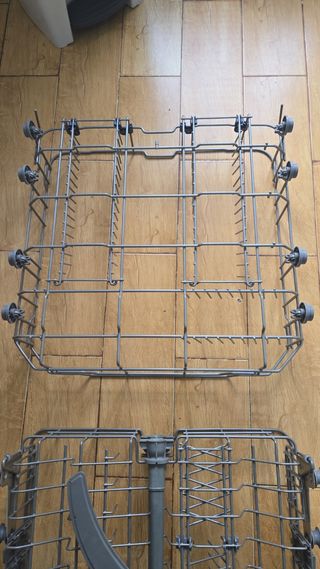 OFERTA Cesta inferior para lavavajillas compatible con varias marcas. De segunda mano con 2 abatibles. Medidas Ancho - 51,5 Largo - 50 (Ver las medidas en las fotos del anuncio) Compatible con las medidas - varias marcas. - Fabricada en metal. - Diseño de rejilla.