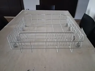 Cesta inferior para lavavajillas de marcas como Teka o Fagor O otras marcas - ver las medidas en las fotos del anuncio Fabricada en metal con recubrimiento. Ancho - 52 Largo - 51 Alto 15 - Compartimentos para cubiertos. - Soportes para platos y vasos. Seminueva - poco uso. Disponibles cestas de estas medidas de AEG ,Electrolux,...