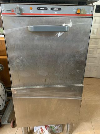 Vendo lavavajillas industrial marca Fagor, ideal para bar, restaurante, cafetería o cocina profesional. 🔹 Marca Fagor 🔹 Uso profesional 🔹 Estructura en acero inoxidable 🔹 Fácil manejo con mandos frontales 🔹 Incluye soporte metálico 🔹 Funcionaba correctamente (recomendable revisar antes de poner en marcha tras tiempo parado) 📏 Medidas aproximadas: Ancho: 60–65 cm Fondo: 60–65 cm Alto total (con soporte): 120–130 cm Perfecto para lavado rápido de platos, vasos y utensilios en hostelería. 📍 Recogida en persona 💬 Para más información, preguntar sin compromiso