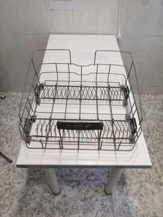 -Cesta inferior para lavavajillas Fagor ES-38 Está en buen estado, - Perfecto para colocar cubiertos y utensilios. Le falta un clip de sujeción de las varillas abatibles y a dos clips les falta un trozito,aún así las varillas no pierden su funcionalidad (ver foto ) o se pueden dejar plegadas para colocar utensilios. - Fabricado en metal resistente plastificado. También regalo todas las piezas del lavavajillas Fagor que están anunciadas en mi portal.