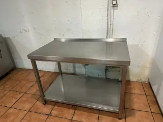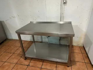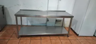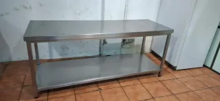 Mesa de trabajo robusta fabricada en acero inoxidable, ideal para cocinas o talleres. Cuenta con un práctico estante inferior para almacenamiento adicional. - Material: Acero inoxidable. - Diseño con dos niveles (superficie y estante inferior). - Estructura resistente y duradera. Compra y venta de todo los muebles de ,, supermercados ,de todas las marcas infrico ,coreco, docriluc, maquimport, comersa ,Berto's ,silanos. Tenemos todo tipo de maquinaria de hostelería. Nevera ,vitrina expositora ,congelador de 4 caras, cafetera ,molinillo ,botellero, cocinas, plancha ,freidora, sillas mesas, máquina de hielo, lavavajillas ,lavamanos,