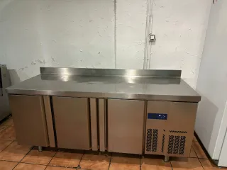 Mesa de trabajo refrigerada de acero inoxidable, ideal para cocinas profesionales. - Superficie de acero inoxidable. - Puertas frontales. - Panel de control digital. Compra y venta de todo los muebles de ,, supermercados ,de todas las marcas infrico ,coreco, docriluc, maquimport, comersa ,Berto's ,silanos. Tenemos todo tipo de maquinaria de hostelería. Nevera ,vitrina expositora ,congelador de 4 caras, cafetera ,molinillo ,botellero, cocinas, plancha ,freidora, sillas mesas, máquina de hielo, lavavajillas ,lavamanos, lavavasos, horno de Convección ,asadores, horno de pizza, ensaladera ,mesa de ingredientes, tostadora ,amasadora b