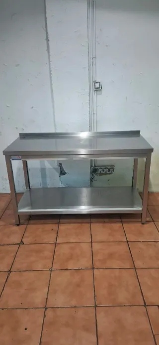 Mesa de trabajo fabricada en acero inoxidable, ideal para cocinas o talleres. - Superficie lisa y resistente. - Estructura metálica robusta. - Con un pequeño protector trasero. Compra y venta de todo los muebles de ,, supermercados ,de todas las marcas infrico ,coreco, docriluc, maquimport, comersa ,Berto's ,silanos. Tenemos todo tipo de maquinaria de hostelería. Nevera ,vitrina expositora ,congelador de 4 caras, cafetera ,molinillo ,botellero, cocinas, plancha ,freidora, sillas mesas, máquina de hielo, lavavajillas ,lavamanos, lavavasos, horno de Convección ,asadores, horno de pizza, ensaladera ,mesa de ingredientes, tostadora ,