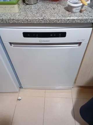 Lavavajillas Hotpoint Ariston de 60x60x85cm, blanco con control digital y 8 programas de lavado. C.E.: A++ Permite usar bandeja superior, inferior o ambas, ideal para ahorrar agua y energía. Incluye extra de secado, modo para pastillas y programador de inicio diferido. Funciona correctamente y lava muy bien. Tiene dos pequeños detalles por uso habitual, algo bastante común y que no afectan a su funcionamiento (se muestran en las fotos): Manguera de desagüe reforzada; actualmente no pierde agua y se puede cambiar fácilmente si se desea. Dos pines de la bandeja inferior rotos, pero se puede usar sin problema. No incluye transporte