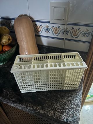 Cesto para cubiertos de lavavajillas Bosch, en buen estado. - Ideal para lavavajillas Bosch. - Color gris oscuro. - Material plástico resistente.