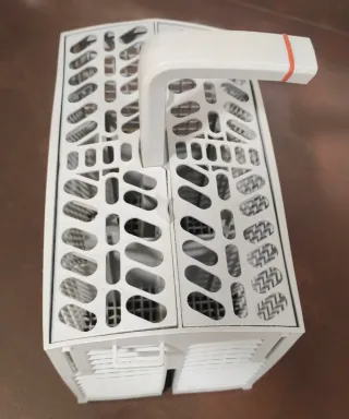 Cesto de repuesto para lavavajillas. Fabricado en plástico resistente y con un diseño de rejilla que permite una buena circulación del agua. - Asa integrada para facilitar su extracción. - Compartimentos para cubiertos y vajilla pequeña. 1, 2 o 3 secciones a elegir.