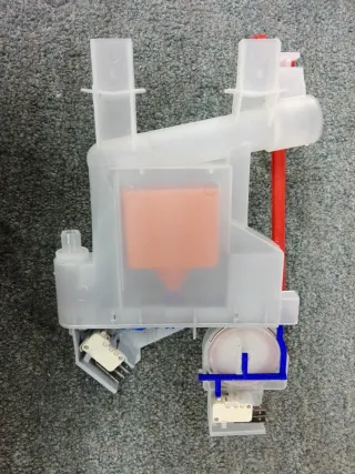 Cámara de vaos para lavavajillas Fagor y Edesa. Pieza de repuesto. - Material: Plástico translúcido y naranja. - Incluye varilla roja.