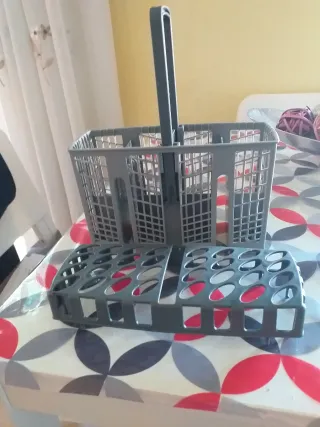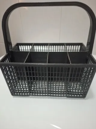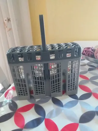 Cesta gris para cubiertos de lavavajillas. Es un accesorio práctico para organizar la vajilla.Esta sin estrenar vale para todas las marcas de lavavajillas. - Material: Plástico resistente. - Color: Gris. - Diseño con compartimentos.En mi perfil tengo más cosas
