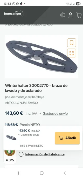 Brazo aspersor lavavajillas Winterhalter 30002770