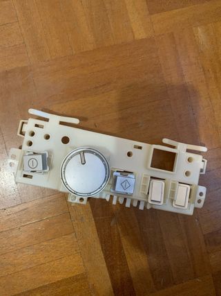Panel de control para lavavajillas Fagor modelo 1LV-250R. Pieza de repuesto en color blanco con dial y botones. - Dial giratorio plateado. - Botón de encendido/apagado con símbolo de círculo. - Botón con símbolo de rombo. - Dos botones rectangulares. - Estructura de plástico blanco.