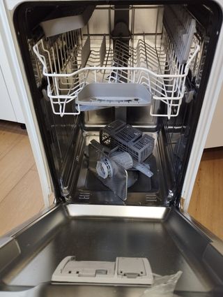 Cesta para lavavajillas compacto y cubiertos.
