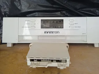 Conjunto de piezas de lavavajillas Infiniton. - Panel de control con display. - Bomba de desagüe. - Motor. - Condensador. - Presostato. - Mangueras y otros componentes.