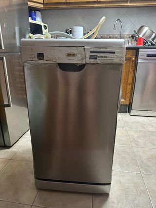 Lavavajillas Zanussi Zanussi 45 en mal estado, aunque funciona. Ideal para quien busca un lavavajillas usado a buen precio. - Modelo: Zanussi Zanussi 45 - Color: Acero inoxidable - Se entrega tal cual se ve en las fotos.