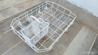 Cesto para la cesta inferior de lavavajillas Zanussi de 45cm NO de 60. Ideal para organizar tu vajilla. - Válido para otras marcas del grupo, buscalo por si te sirve - Fabricado en metal blanco. - Incluye cubertero. - Ruedas para fácil deslizamiento. Si el anuncio sigue es que está disponible.