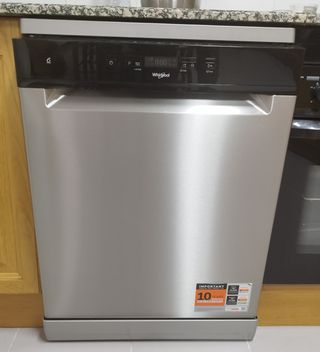 Lavavajillas de acero inoxidable Whirlpool con tecnología 6th Sense. - Panel de control digital con pantalla. - Acabado en acero inoxidable. - Diseño moderno y elegante.