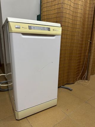 Lavavajillas Candy de libre instalación con capacidad para 6 cubiertos. Ideal para cocinas pequeñas. - Color blanco. - Programas de lavado variados. - Indicadores luminosos de funcionamiento. lleva años desconectado pero funcionaba perfectamente cuando se desinstaló. Entrega en mano