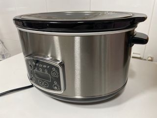 Vendo Slow Cooker Beper impecable, solo 2 usos reales. La vendo por falta de espacio. Es el modelo digital (PVP 70€), mucho más preciso que el manual. • Capacidad 4.5L: Ideal para familias. • Panel Digital: Temporizador programable e inicio diferido (cocina mientras no estás). • 3 Modos: Alta, Baja y Mantener caliente. • Calidad: Cuerpo de acero inoxidable y cubeta de cerámica negra extraíble (apta para lavavajillas). • Estado: Como nueva, sin marcas ni rayones. Se entrega limpia y lista para usar. No conservo la caja.